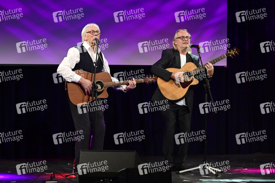 Peter Paulick und Thomas Friedrich aka Peter und Paul bei der Radio-Aufzeichnung der 1000. Sendung 'Kofferradio' im Freizeitforum Marzahn. Berlin, 31.01.2025