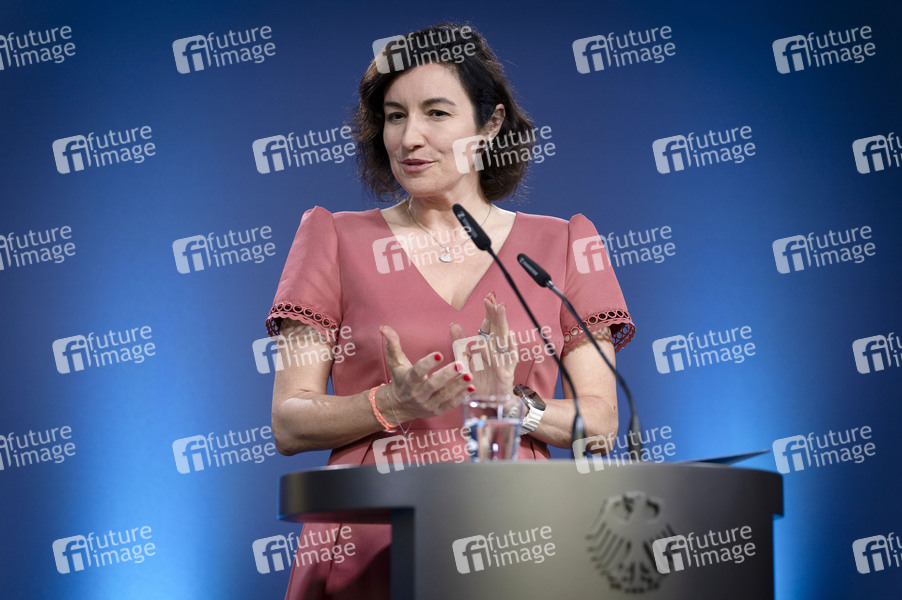 Dorothee Bär bei der Unterzeichnung von Absichtserklärungen zur Stärkung der Zusammenarbeit in Wissenschaft, Technologie und Innovation und zur Verlängerung der Raumfahrtkooperation im Bundesministerium für Forschung, Technologie und Raumfahrt. Berlin, 26.06.2025
