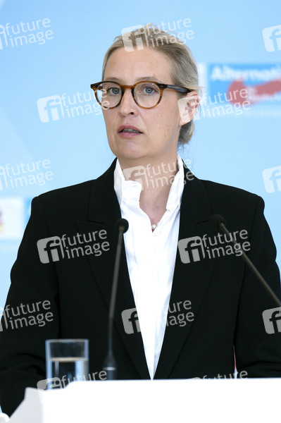 Politik, Statement, Pressekonferenz, PK, Deutscher Bundestag, Demokratie, Parlament, Parlamentsgebäude, Volksvertreter, MdB, Mitglied des Bundestages, Abgeordnete, Politikerin, Vorsitzende der AfD-Bundestagsfraktion, Bundessprecherin der AfD