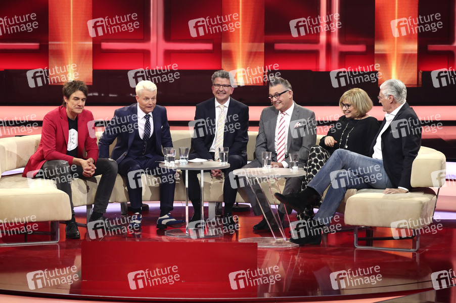 Matze Knop, Guido Cantz, Markus Paßlick, Götz Alsmann Mary Roos und Sky du Mont bei der Aufzeichnung der ARD-Unterhaltungsshow 'Verstehen Sie Spass?' in den Bavaria Studios. Geiselgasteig bei München, 03.04.2019