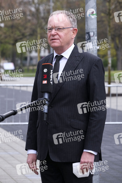 Stephan Weil bei einer Gedenkzeremonie für die Verstorbenen in der Corona-Pandemie vor der Nikolaikapelle an der Goseriede. Hannover, 18.04.2021