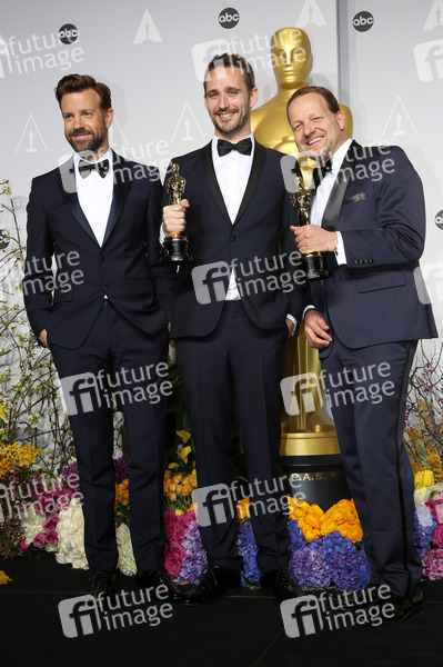 Jason Sudeikis mit Anders Walter und Kim Magnusson mit Oscars für den besten Kurzfilm 'Helium' bei der Oscar Verleihung 2014 / 86th Academy Awards Preisverleihung im Dolby Theatre, Hollywood. Los Angeles, 02.03.2014