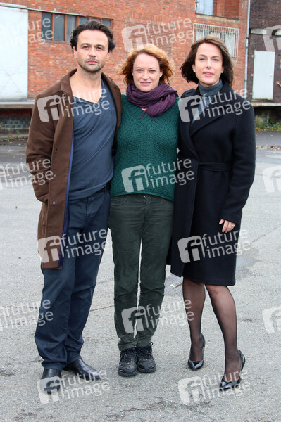 Michael Rotschopf, Nina Grosse und Claudia Michelsen beim Fototermin am Set des ARD-Films 'Der Mann am Strand'. Hamburg, 28.10.2013