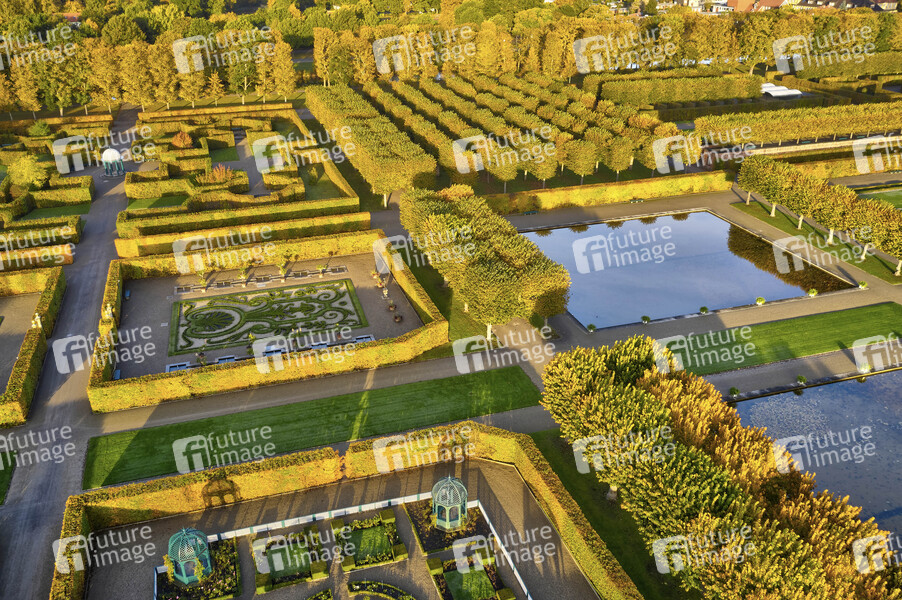 Luftbild der Herrenhäuser Gärten im Herbst (Flug ordnungsgemäß bei der Polizei Hannover-Stöcken angemeldet. Schriftliche Bildfreigabe der Pressestelle der Herrenhäuser Gärten Hannover erteilt durch Frau Anja Kestennus). Hannover, 23.10.2021