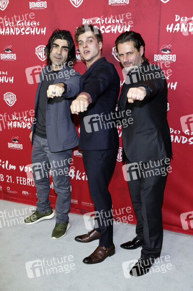 Fatih Akin, Jonas Dassler und Adam Bousdoukos bei der Premiere des Kinofilms 'Der goldene Handschuh' in der Astor Film Lounge HafenCity. Hamburg, 20.02.2019