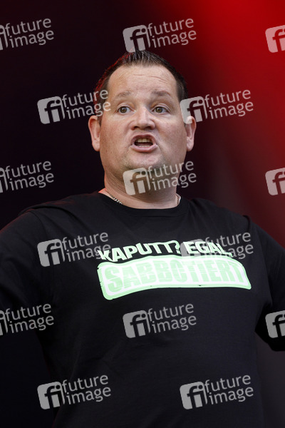 Sabbotage bei seinem Auftritt beim Konzert von Mia Julia im Kulturgarten in der Bonner Rheinaue. Das Bonn Live Kulturgarten Open Air Festival 2020 ist Europas erstes Open Air Festival unter Corona-Auflagen wegen der Covid-19 Pandemie. Bonn, 08.08.2020