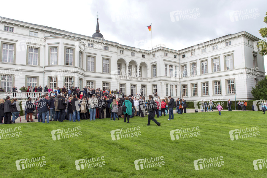 Pressegespräch mit Angela Merkel am Palais Schaumburg am Tag der offenen Tür in der Villa Hammerschmidt und dem Palais Schaumburg. Bonn, 29.06.2013