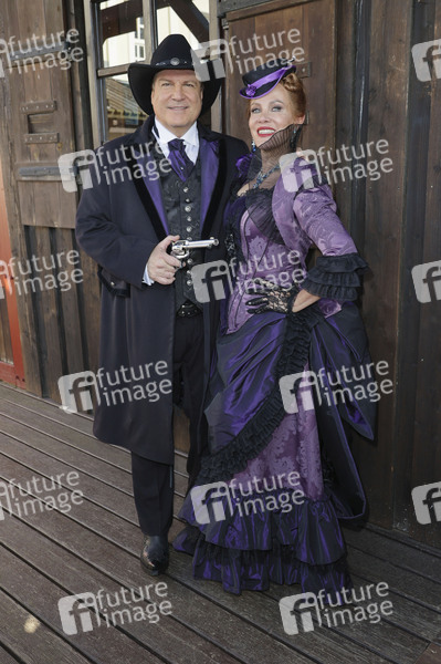 Francis Fulton-Smith und Sonja Kirchberger bei der Präsentation der Gaststars von 'Halbblut' der Karl-May-Festpiele 2025 im Indian Village. Bad Segeberg, 07.03.2025
