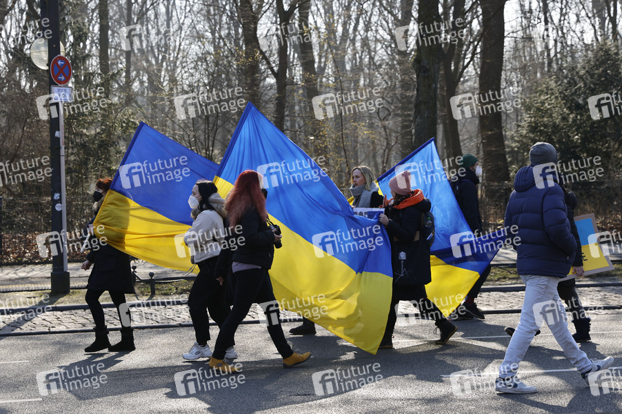 Großdemonstration unter dem Motto 'Stoppt den Krieg. Frieden für die Ukraine und ganz Europa' zwischen Brandenburger Tor, der Straße des 17. Juni und an der Siegessäule. Berlin, 27.02.2022