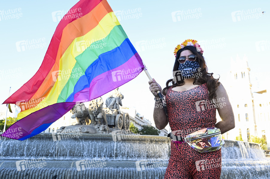Wegen der Coronakrise nimmt die LGBT-Community viele ihrer Veranstaltungen online wahr. Etliche Aktivisten gingen trotzdem zur Guia del Orgullo LGTBI / Gay Pride Parade 2020 auf die Straße. Madrid, 28.06.2020