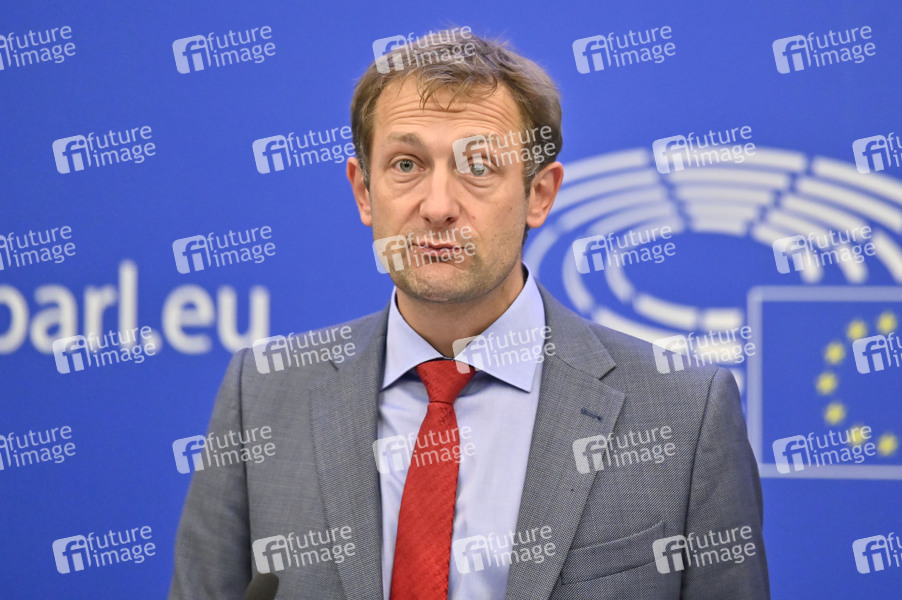 Christophe Hansen bei einer Pressekonferenz zur Verordnung über Entwaldung im Europäischen Parlament. Straßburg, 13.09.2022