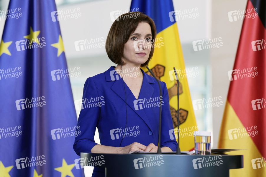 Maia Sandu beim Empfang der Präsidentin der Republik Moldau zu einem gemeinsamen Gespräch mit dem Bundeskanzler mit anschließendem Pressestatement im Bundeskanzleramt. Berlin, 17.05.2024