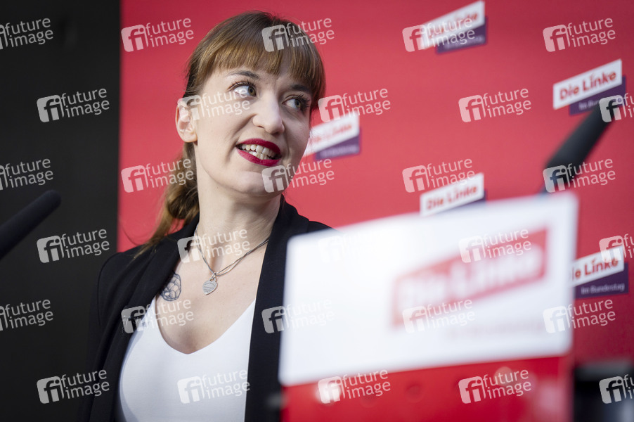 Heidi Reichinnek bei einem Pressestatement der Partei Die Linke im Reichstagsgebäude. Berlin, 10.02.2025