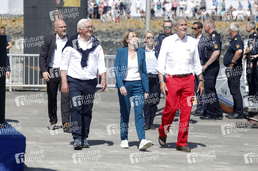 Frank-Walter Steinmeier mit Ehefrau Elke Büdenbender bei der Eröffnung der Sail Bremerhaven 2025 mit Begrüßungszeremoniell und Segeltörn auf der 'Gorch Fock', Besichtigung des Seenotrettungskreuzers 'Hermann Rudolf Meyer' und Empfang auf der Fregatte 'Bayern'. Bremerhaven, 13.08.2025
