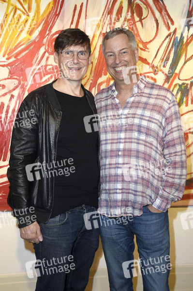 Thomas Hermanns mit Ehemann Wolfgang Macht bei der Eröffnung der Alexander Höller Ausstellung 'F*CK THEM' in der Galerie Schmalfuss. Berlin, 19.08.2021