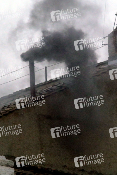 Schwarzer Rauch steigt aus dem Schornstein der Sixtinischen Kapelle, der anzeigt, dass die Kardinäle noch zu keinem Ergebnis bei ihrer Papstwahl gekommen sind. Vatikanstadt, 13.03.2013