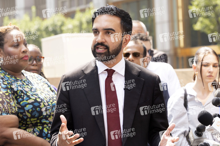 Zohran Mamdani bei einer Wahlkampfveranstaltung für das Bürgermeisteramt auf der Federal Plaza. New York, 07.08.2025
