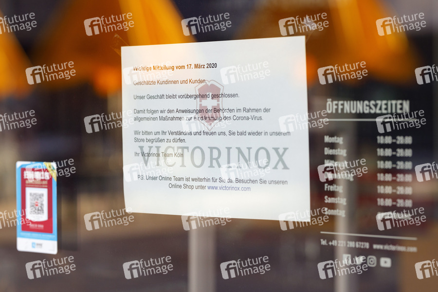 Ein Souvenirladen von Victorinox bleibt bis auf weiteres wegen der Corona-Krise geschlossen. Köln, 19.03.2020