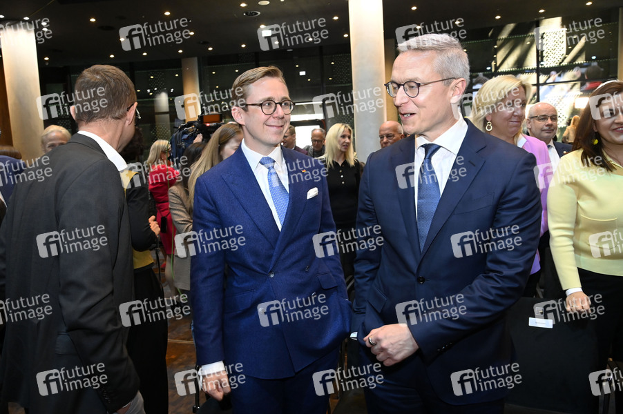 Philipp Amthor und Karsten Wildberger bei der Unterzeichnung des Koalitionsvertrages zwischen CDU, CSU und SPD im Gasometer Schöneberg. Berlin, 05.05.2025