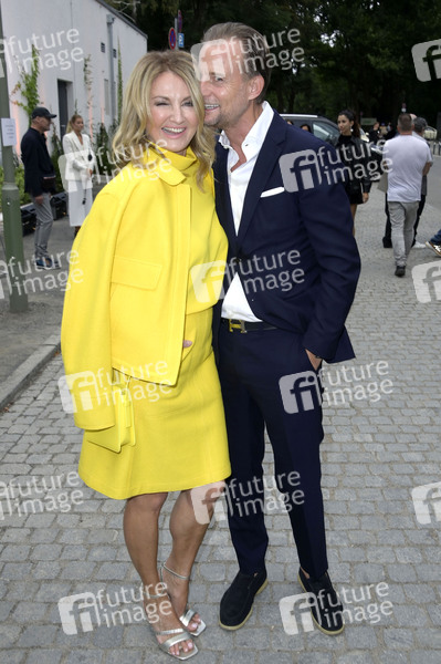 Frauke Ludowig mit Begleitung bei der Marc Cain Fashion Show 'Feel The Moment' auf der Berlin Fashion Week Spring/Summer 2023 im Café am Neuen See. Berlin, 06.09.2022