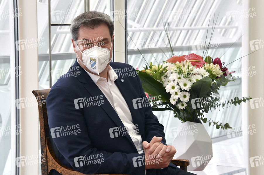 Markus Söder bei einem persönlichen Austausch des bayerischen Ministerpräsidenten mit dem österreichischen Bundeskanzler in der Staatskanzlei. München, 11.05.2021