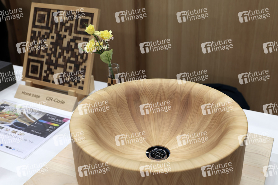 Massivholz-Waschbecken beim Presserundgang zur Eröffnung der imm cologne - World of Interiors, der Fachmesse für Möbel und Innenraumgestaltung, in der Koelnmesse, Köln, 20.01.2026