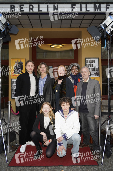 Max Hubacher, Svenja Jung, Maya Morgeneyer, Rike Eckermann, Gast, Dela Dabulamanzi und Adolfo Assor bei der Premiere des ZDF Fernsehfilms 'Sterben für Beginner' auf dem achtung berlin Filmfestival 2025 im Kino Babylon. Berlin, 08.04.2025