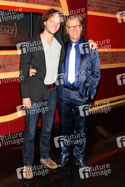 Andre Rieu mit Sohn Pierre bei der Aufzeichnung der ZDF-Talkshow 'Markus Lanz' im Studio Stahltwiete. Hamburg, 13.11.2013