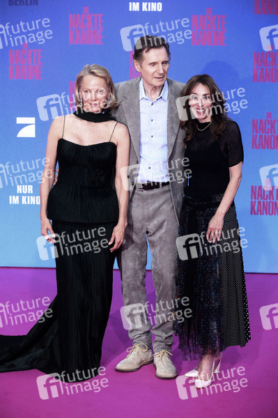 Pamela Anderson, Liam Neeson und Erica Huggins bei der Premiere des Kinofilms 'Die nackte Kanone / The Naked Gun' im Kino UCI Luxe East Side Gallery. Berlin, 24.07.2025