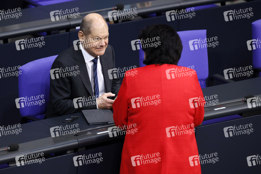 Olaf Scholz in der 203. Sitzung des Deutschen Bundestages im Reichstagsgebäude. Berlin, 13.01.2021