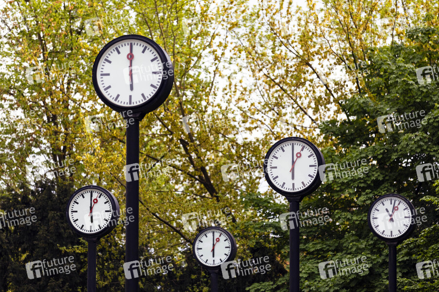 Uhren der Installation 'Zeitfeld' von Klaus Rinke. Düsseldorf, 05.08.2019
