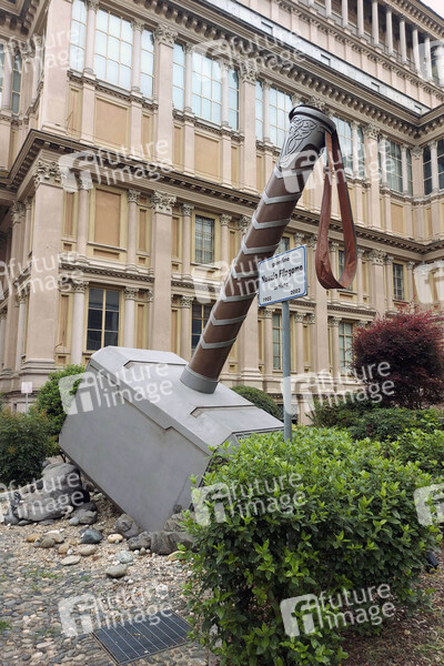 Thors Hammer 'Mjölnir' vor dem Museo Nazionale del Cinema im Mole Antonelliana, wo die Ausstellung 'Movie Icons' zu sehen ist. Mailand, 01.08.2024