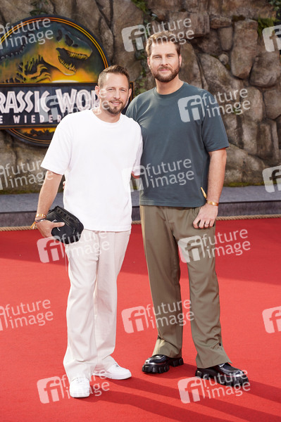 Maurice Gajda mit Freund Michael Barg bei der Premiere des Kinofilms 'Jurassic World: Rebirth / Jurassic World: Die Wiedergeburt' im Zoo Palast. Berlin, 18.06.2025