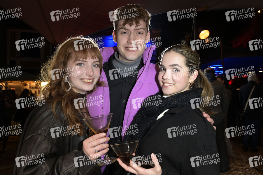 Hannah Brand, Max und Josie Hermer bei der Medienboard Party 2024 im Rahmen der Berlinale 2024 am Holzmarkt. Berlin, 17.02.2024