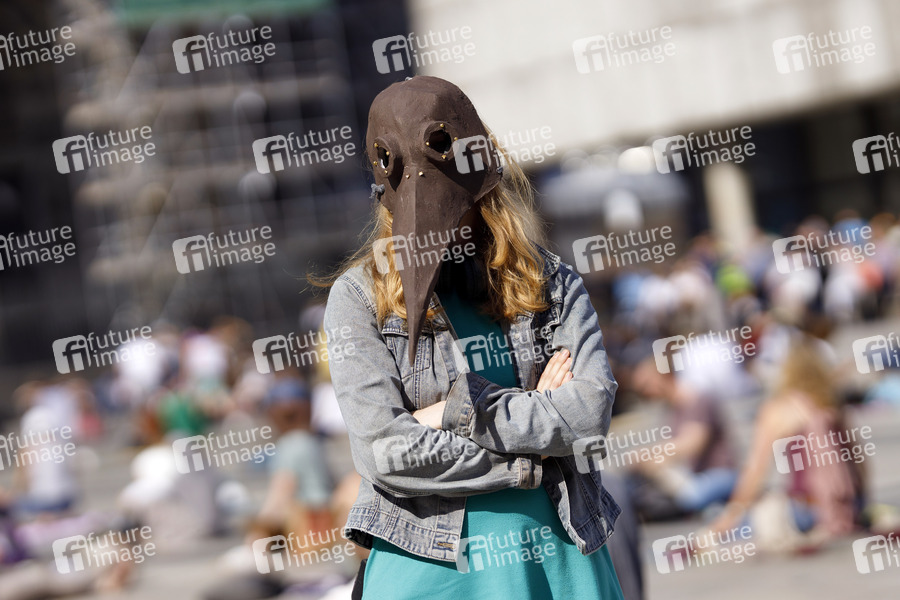 Pestmaske, Maskenpflicht, Mundschutz, Corona-Regeln, Corona-Demo, Corona-Maßnahmen, Coronamaßnahmen, Coronakrise, Corona-Krise, Corona, Virus, Coronavirus, Corona-Virus, Coronaviren, Corona-Viren, Covid-19, Covid19, Sars-CoV-2, Infektionsschutzgesetz, Freiheitsrechte, Freiheitseinschränkungen, Demo, Demonstration, Demonstranten, Widerstand 2020, Grundrechte, Grundgesetz, Ausgangsbeschränkungen, Kontaktverbot, Versammlungsverbot, Demonstrieren, Pandemie, Epidemie, Corona-Schutz, flatten the curve, Ausnahmesituation, Mindestabstand, Social Distancing, Kontakt verboten, Ausgangsbeschränkung, Abstand, Abstand halten, Abstandsregel, Abstandsregeln, Allgemeinverfügung, Symbolbild, Symbolfoto