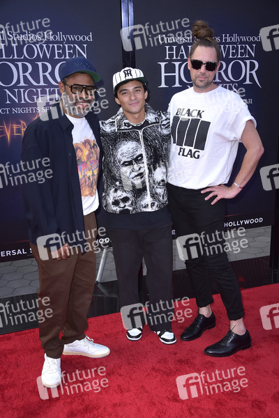 Jordan Peele, Brandon Perea und Ian Cooper bei der Eröffnung der 'Halloween Horror Nights 2022' in den Universal Studios Hollywood. Universal City, 08.09.2022