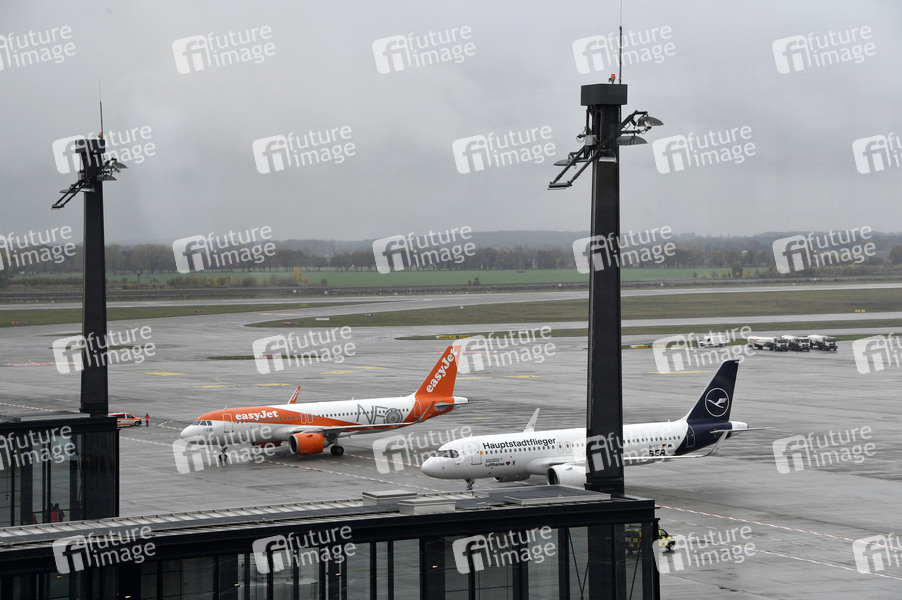 Ankunft der ersten beiden Flüge von easyJet und Lufthansa bei der Eröffnung des Flughafens Berlin-Brandenburg (BER). Schönefeld, 31.10.2020