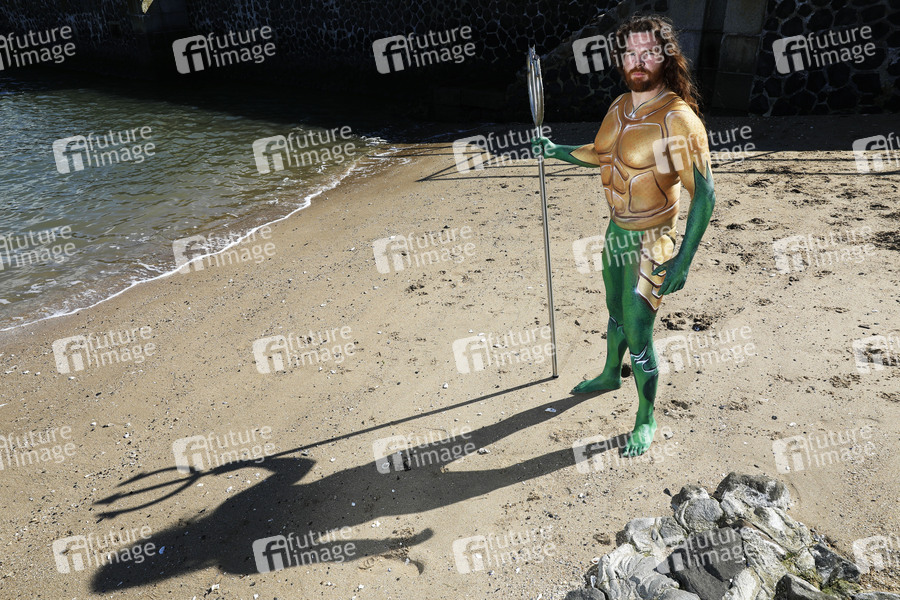 Cosplay, Cosplayer, Bodypainting, Body-Painting, Make-up, Latexappliaktionen, Latexteile, Maskenbildnerei, Maskenbildner Körperkunst, Körperfarben, Projekt Farbkörper, Farbe, Bemalung, Kunst, Malerei, Wassermann, DC, Atlantis, Meer, Wasser, Strand, Nordsee, Bucht, Meeresbucht, body painting, body art, project color body, colors, aquarius, sea, water, beach, bay, North Sea