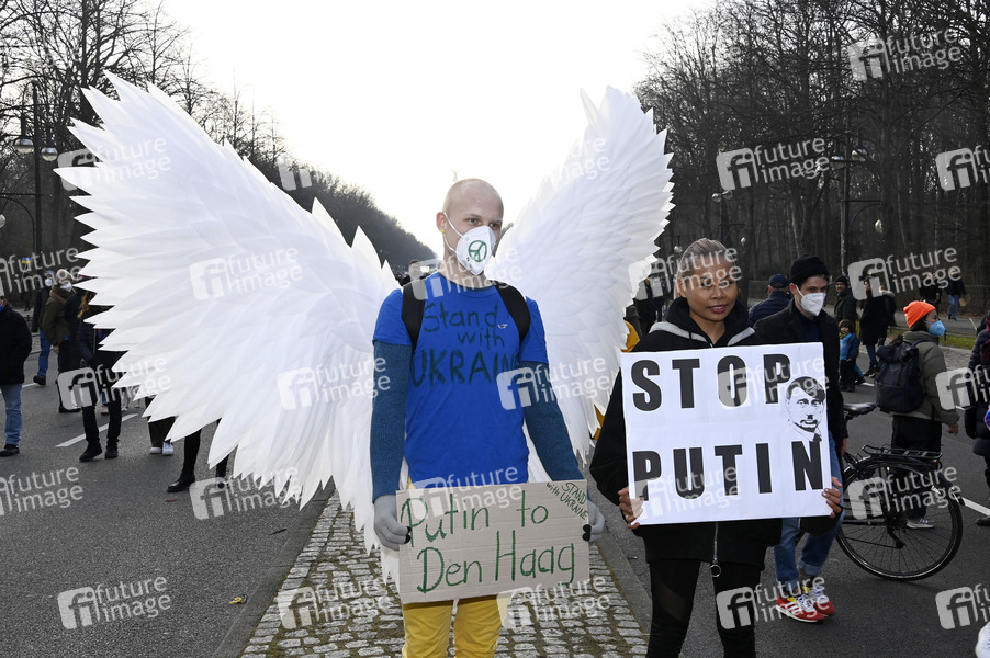 Großdemonstration unter dem Motto 'Stoppt den Krieg. Frieden für die Ukraine und ganz Europa' zwischen Brandenburger Tor, der Straße des 17. Juni und an der Siegessäule. Berlin, 27.02.2022