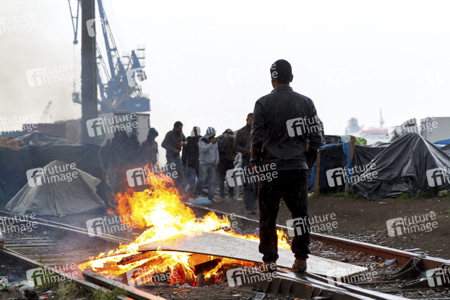 Flüchtlinge erreichen täglich die drei Flüchtlingscamps in Calais. Betroffen sind mehr als 800 Flüchtlinge aus Asien, Nahost und Afrika, die von dort aus nach Großbritannien gelangen wollen. Calais, 26.05.2014