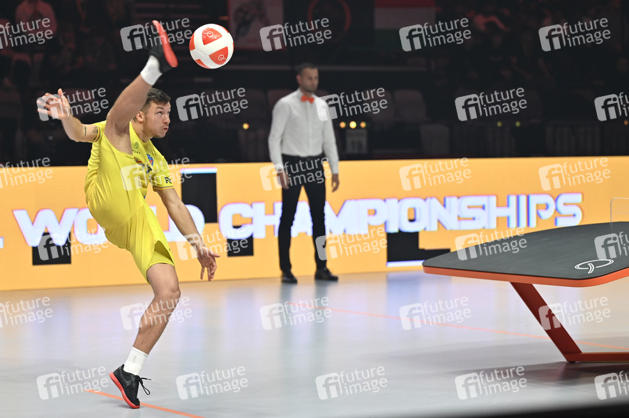 Apor Gyorgydeak (Rumanien) beim Man Single Finale Rumanien vs Polen bei der Teqball Weltmeisterschaft 2022 in der Kia Metropole Arena. Nürnberg, 27.11.2022