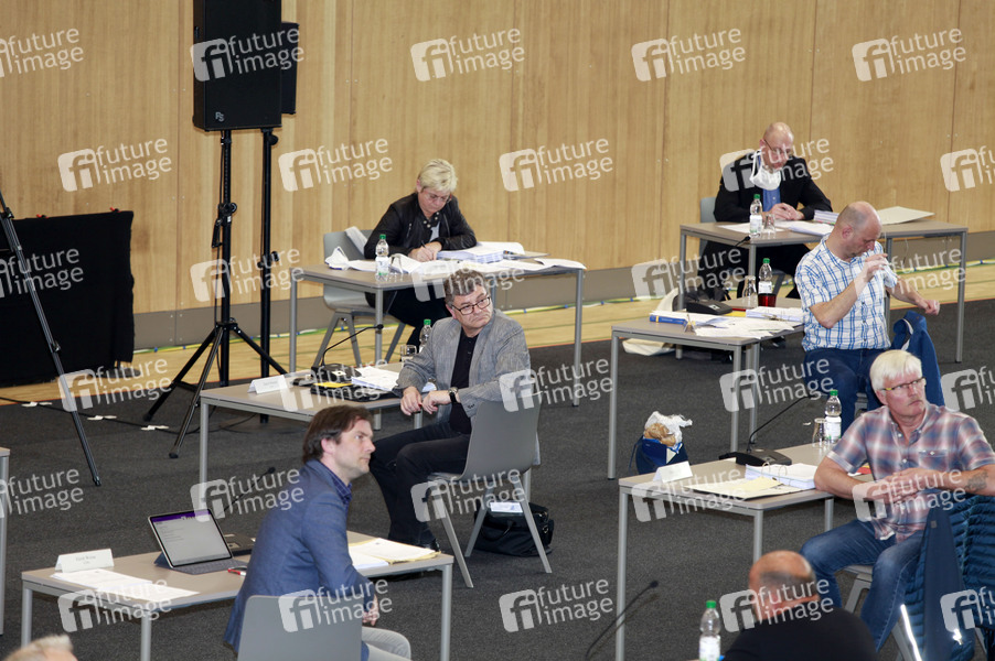 Öffentliche Sitzung des Görlitzer Stadtrats nach Corona-Schutzverordnung in der Sporthalle Emil-von-Schenckendorff. Görlitz, 30.04.2020