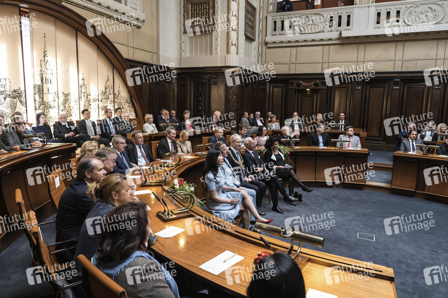 Schröder-Kim So-yeon, Gerard Schröder, Stefan Schostok, Madrid Samii und Mashid Samii beim Empfang zum 75. Geburtstag von Ehrenbürger und Bundeskanzler a.D. Gerhard Schröder im Neuen Rathaus. Hannover, 24.04.2019