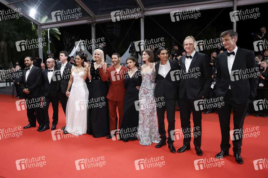 Louai El Amrousy, Emma Mackey, Mélissa Boros, Julia Ducournau, Tahar Rahim, Golshifteh Farahani, Finnegan Oldfield, Cast und Team bei der Premiere des Kinofilms 'Alpha' auf dem Festival de Cannes 2025 / 78. Internationale Filmfestspiele von Cannes im Palais des Festivals. Cannes, 19.05.2025