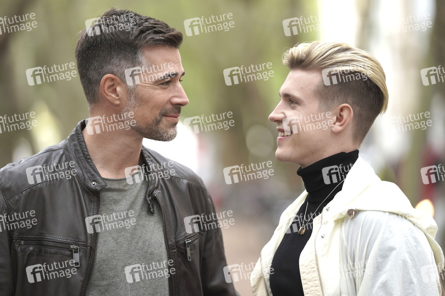 Jo Weil und Lennart Betzgen beim Fototermin zur TVNOW TV-Serie 'Verbotene Liebe - Next Generation' in der Weißenburgstraße. Köln, 06.10.2020
