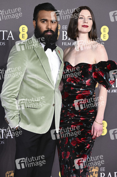 Himesh Patel mit Begleitung bei der Verleihung der BAFTA Film Awards 2024 / 77th British Academy Film Awards in der Royal Festival Hall. London, 18.02.2024