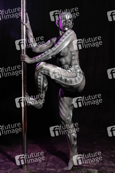 Bodypainting, Erotik, Frau, nackt, drinnen, weiblich, Monster, Außerirdische, Alien, Echse, Körperkunst, Kunst, Malerei, monochrom, erotic, woman, nude, indoor, female, monochrome, lizard, body art, body painting