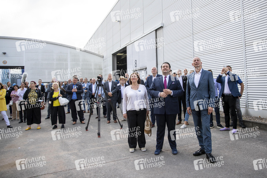 Sven J. Köllmann und Wolfgang Tiefensee beim Richtfest des neuen Hotels an der Messe Erfurt. Die Légère Hotelgruppe übernimmt die Leitung. Erfurt, 16.07.2021