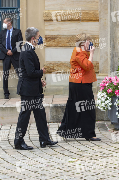 Angela Merkel mit Ehemann Joachim Sauer bei der Eröffnung der Richard-Wagner-Festspiele 2021 mit der Premiere von Richard Wagners 'Der fliegende Holländer' im Bayreuther Festspielhaus. Bayreuth, 25.07.2021