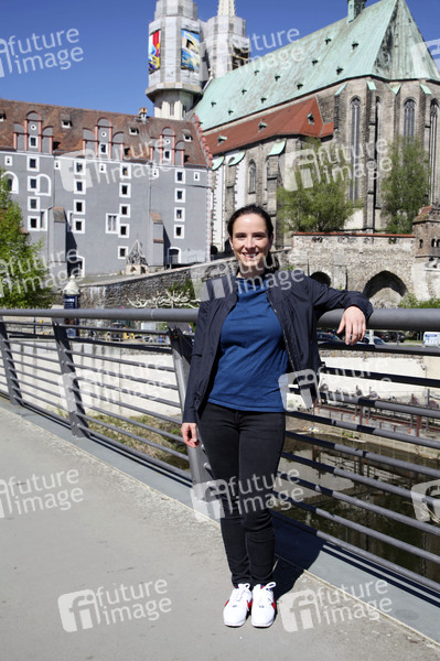 MadC bei der Enthüllung ihrer Graffiti-Kunstwerke an den Türmen der Peterskirche. Görlitz, 25.04.2019
